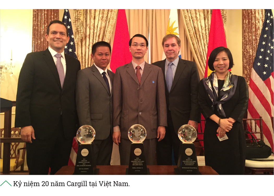 Kỷ niệm 20 năm thành lập tại Việt Nam, năm 2015, Cargill đã có hơn 1.000 nhân viên, trên 1.000 đại lý, Quỹ Cargill Cares tăng tốc trong chương trình xây trường và khánh thành tới điểm trường Cargill Cares thứ 75. Công ty cũng được Bộ Ngoại giao Mỹ trao giải thưởng “Doanh nghiệp xuất sắc” vì những nỗ lực phục vụ con người và cộng đồng.