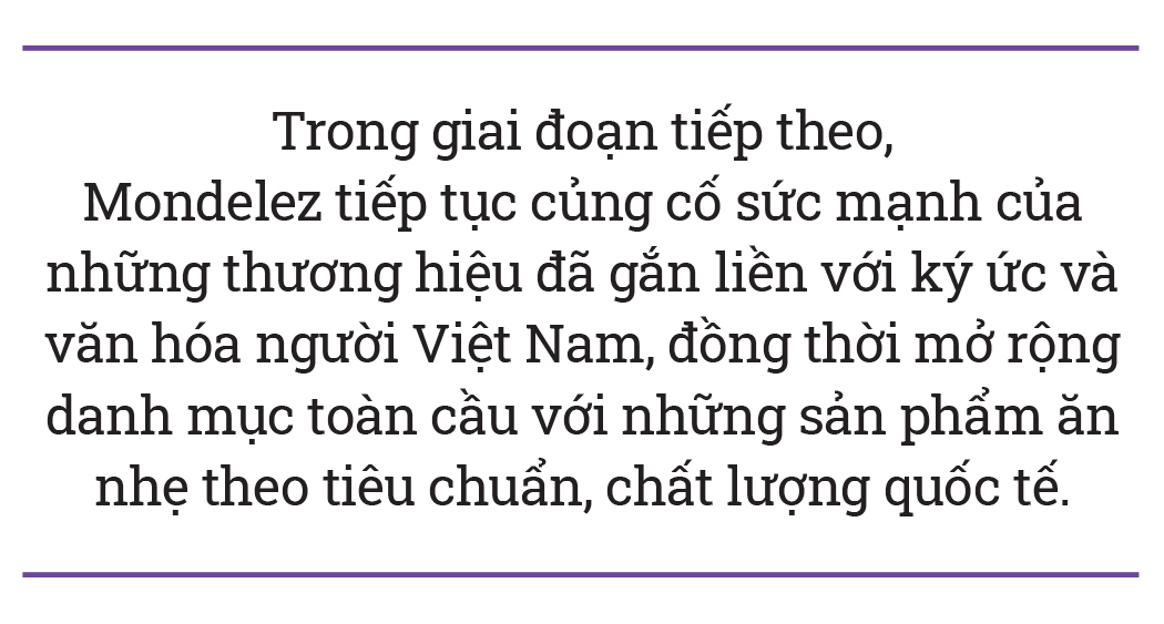 Trong giai đoạn tiếp theo, chúng tôi tiếp tục tận dụng và nâng cao năng lực sản xuất và phân phối để củng cố sức mạnh của những thương hiệu đã gắn liền với ký ức và văn hóa người Việt Nam, đồng thời mở rộng danh mục toàn cầu, giúp người tiêu dùng trên cả nước tiếp cận những sản phẩm ăn nhẹ được phát triển theo tiêu chuẩn quốc tế.