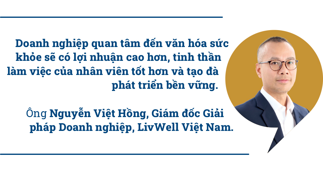 Trong khi đó, theo ông Nguyễn Việt Hồng, Giám đốc Giải pháp Doanh nghiệp, LivWell Việt Nam, để xây dựng văn hóa sức khỏe mà không tốn nhiều chi phí, doanh nghiệp có thể tổ chức các hoạt động đơn giản như đi bộ hoặc trao đổi kiến thức về dinh dưỡng và thể chất. “Doanh nghiệp quan tâm đến văn hóa sức khỏe sẽ có lợi nhuận cao hơn, tinh thần làm việc của nhân viên tốt hơn và tạo đà phát triển bền vững”, ông nói.