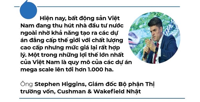 Ông Stephen Higgins, Giám đốc Bộ phận Thị trường vốn, Cushman & Wakefield Nhật Bản, gọi đây là những "Kỳ quan đô thị". Điển hình là dự án Vinhomes Green Paradise (Cần Giờ) với quy mô hơn 1.000 ha. Một tuyến đường sắt tốc độ cao 350 km/h được quy hoạch giúp kết nối dự án với trung tâm TP.HCM chỉ trong 13 phút. Siêu đô thị này được phát triển theo tiêu chuẩn xanh, bền vững (ESG) để đáp ứng yêu cầu khắt khe của các định chế tài chính quốc tế. Tích hợp đầy đủ từ bệnh viện, trường học, sân golf đến các dịch vụ chăm sóc người cao tuổi - một mô hình "thành phố trong thành phố" hiếm có trên thế giới ngoài Trung Quốc hay Ấn Độ.