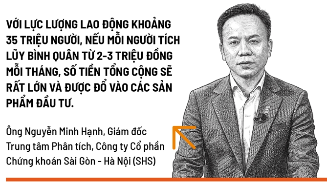 Ông Nguyễn Minh Hạnh, Giám đốc Trung tâm Phân tích, Công ty Chứng khoán Sài Gòn - Hà Nội (SHS), nhận định: “Với lực lượng lao động 35 triệu người, nếu mỗi người tích lũy 2-3 triệu đồng/tháng, nguồn vốn này sẽ tạo ra sự bền vững chưa từng có cho thị trường”.