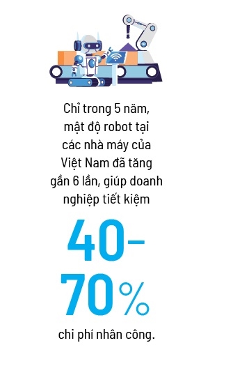 Theo số liệu từ Liên đoàn Robot Quốc tế (IFR), Việt Nam hiện là một trong những quốc gia có tốc độ tăng trưởng robot công nghiệp nhanh nhất Đông Nam Á. Chỉ trong 5 năm, mật độ robot tại các nhà máy trong nước đã tăng gần 6 lần, giúp doanh nghiệp tiết kiệm 40-70% chi phí nhân công.