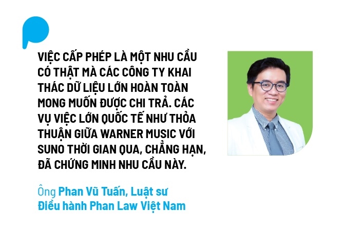 “Việc cấp phép là một nhu cầu có thật mà các công ty khai thác dữ liệu lớn hoàn toàn mong muốn được chi trả. Các vụ việc lớn quốc tế như thỏa thuận giữa Warner Music với Suno thời gian qua, chẳng hạn, đã chứng minh nhu cầu này”, ông Tuấn nói.