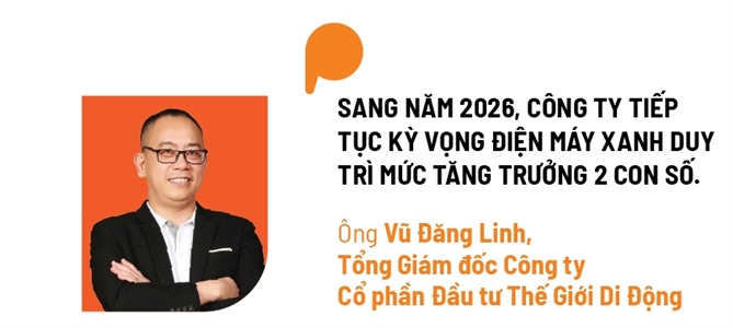 Ông Vũ Đăng Linh, Tổng Giám đốc Công ty Cổ phần Đầu tư Thế Giới Di Động, nhận định, Công ty có lợi thế khi chứng kiến xu hướng chuyển dịch của người tiêu dùng sang kênh bán lẻ hiện đại và việc đẩy mạnh dịch vụ, tạo ra các thị trường mới cho sản phẩm. Sang năm 2026, Công ty tiếp tục kỳ vọng Điện Máy Xanh duy trì mức tăng trưởng 2 con số.