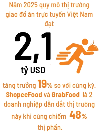 Năm 2025 quy mô thị trường giao đồ ăn trực tuyến Việt Nam đạt 2,1 tỷ USD. Ảnh: TL.