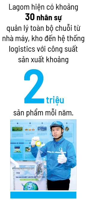 Sau gần 6 năm “vật lộn” với công nghệ, đến năm 2025, Lagom mới thực sự hoàn thiện quy trình của mình. Hiện tại, doanh nghiệp này đang vận hành với khoảng 30 người quản lý toàn bộ chuỗi từ nhà máy đến logistics, công suất đạt 2 triệu sản phẩm mỗi năm và mang lại doanh thu khoảng 5 tỉ đồng/năm.