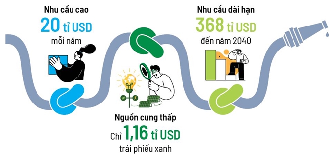 Dù khung pháp lý đã hình thành, thực tế thị trường vẫn đang ở giai đoạn khởi đầu đầy nhọc nhằn. Khoảng cách tài chính (financing gap) hiện ra như một vực thẳm: trong khi nhu cầu hằng năm là 20 tỉ USD, tổng giá trị trái phiếu xanh phát hành trong 5 năm qua chỉ vỏn vẹn 1,16 tỉ USD.