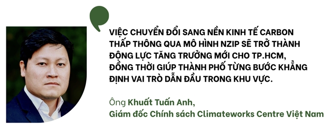 Phân tích sâu hơn về lợi ích chiến lược, ông Khuất Tuấn Anh nhấn mạnh: “Việc chuyển đổi sang nền kinh tế carbon thấp thông qua mô hình NZIP sẽ trở thành động lực tăng trưởng mới cho TP.HCM, đồng thời giúp thành phố từng bước khẳng định vai trò dẫn đầu trong khu vực”.