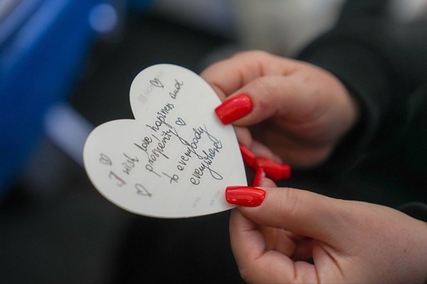 Trong không gian khoang hành khách, giữa những thanh âm hạnh phúc được vang lên như một chất xúc tác kết nối cảm xúc, mỗi hành khách lại gửi gắm lời chúc phúc riêng của mình vào những tấm thiệp, cùng chúc cho hạnh phúc Việt Nam được cất cánh bay cao.