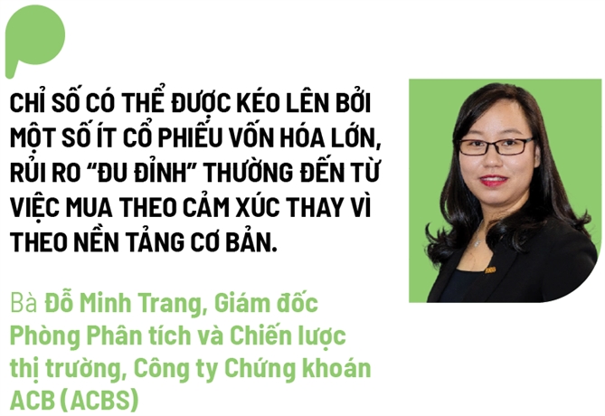 “Trong bối cảnh thị trường chứng khoán phân hóa mạnh, chiến lược đầu tư phù hợp với nhà đầu tư cá nhân không nên chạy theo điểm số VN-Index, mà cần tập trung vào chất lượng tài sản và chu kỳ lợi nhuận doanh nghiệp. Khi chỉ số có thể được kéo lên bởi một số ít cổ phiếu vốn hóa lớn, rủi ro “đu đỉnh” thường đến từ việc mua theo cảm xúc thay vì theo nền tảng cơ bản”, bà Trang chia sẻ.