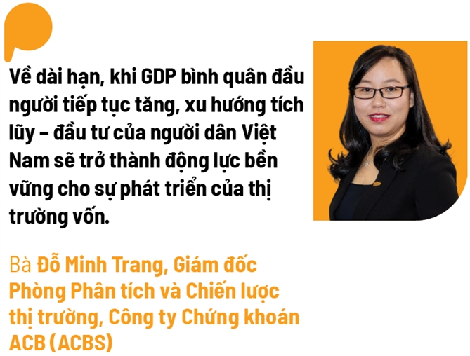 “Về dài hạn, khi GDP bình quân đầu người tiếp tục tăng, xu hướng tích lũy, đầu tư của người dân Việt Nam sẽ trở thành động lực bền vững cho sự phát triển của thị trường vốn”, bà Trang chia sẻ.
