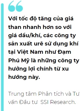 Với tốc độ tăng của giá than nhanh hơn so với giá dầu/khí, các công ty sản xuất urê sử dụng khí tại Việt Nam như Tổng Công ty Phân bón và Hóa chất Dầu khí (Đạm Phú Mỹ, mã DPM) là những công ty hưởng lợi chính từ xu hướng này vì không chịu mức giá than cao trong khi tận dụng được giá bán urê cao.