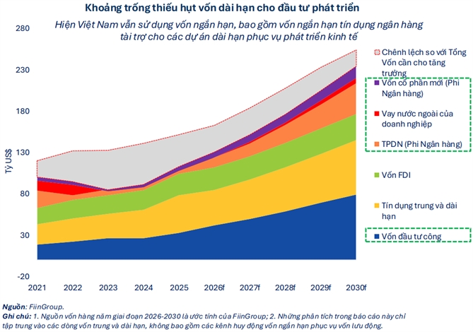Tuy nhiên, khoảng trống vốn dài hạn cho tăng trưởng vẫn chưa có kênh thay thế rõ ràng. Theo các chuyên gia của FiinGroup, mô hình tăng trưởng hiện vẫn phụ thuộc lớn vào tín dụng ngân hàng (tỉ lệ tín dụng/GDP đã ở mức cao ~146% cuối 2025), trong khi dư địa mở rộng tín dụng bị giới hạn bởi rủi ro hệ thống và yêu cầu ổn định vĩ mô.