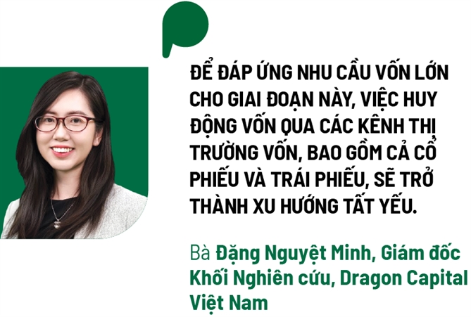 “Điểm mấu chốt là vốn từ đâu. Để đáp ứng nhu cầu vốn lớn cho giai đoạn này, việc huy động vốn qua các kênh thị trường vốn, bao gồm cả cổ phiếu và trái phiếu, sẽ trở thành xu hướng tất yếu. Đồng thời, các doanh nghiệp Việt Nam sẽ cần tiếp cận nguồn vốn dài hạn từ các tổ chức tài chính và nhà đầu tư quốc tế. Điều này đặt ra yêu cầu cấp thiết về tiếp tục cải cách hành lang pháp lý, cải thiện khả năng tiếp cận của khối ngoại (mở room), và nâng cao vị thế của Việt Nam trên bản đồ đầu tư toàn cầu, nhằm tạo điều kiện thuận lợi cho dòng vốn dài hạn và bền vững”, bà Minh chia sẻ.