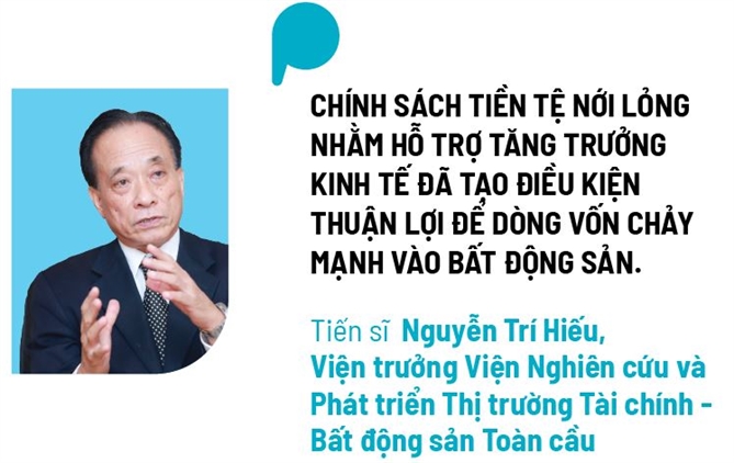 Tiến sĩ Nguyễn Trí Hiếu, Viện trưởng Viện Nghiên cứu và Phát triển Thị trường Tài chính - Bất động sản Toàn cầu, nhận định chính sách tiền tệ nới lỏng nhằm hỗ trợ tăng trưởng kinh tế đã tạo điều kiện thuận lợi để dòng vốn chảy mạnh vào bất động sản. Mặt khác, bất động sản vốn là lĩnh vực có nhu cầu vốn lớn và tiềm năng sinh lời cao, nên được các ngân hàng ưu tiên giải ngân.