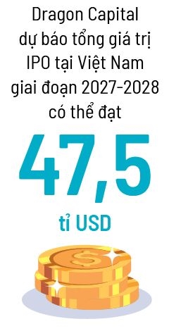 Dragon Capital dự báo, tổng giá trị IPO tại Việt Nam giai đoạn 2027-2028 có thể đạt 47,5 tỉ USD. Ông Lê Anh Tuấn, Tổng Giám đốc Dragon Capital Việt Nam, kỳ vọng 5 năm tới thị trường chứng khoán Việt Nam sẽ tương đương thành quả của 10-15 năm trước cộng lại, xét cả về chính sách, hạ tầng lẫn độ sâu, mở ra cơ hội lớn cho cả doanh nghiệp lẫn nhà đầu tư.