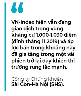 SHS dự báo VN-Index có thể sẽ tiếp tục diễn ra những rung lắc khi áp lực chốt lời gia tăng trong vùng kháng cự 1.000-1.030 điểm (đỉnh tháng 11.2019). Theo đó, SHS khuyến nghị nhà đầu tư đang có tỉ trọng cổ phiếu cao trong danh mục có thể bán ra chốt lời khi thị trường nằm trong vùng kháng cự trong khoảng 1.000-1.030 điểm. Nhà đầu tư đang có tỉ trọng tiền mặt cao trong danh mục có thể canh những nhịp điều chỉnh về quanh ngưỡng 975 điểm (MA20) để giải ngân trở lại.
