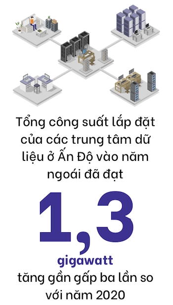 Các trung tâm dữ liệu đang mọc lên chóng mặt trên khắp cả nước. Theo Công ty Bất động sản JLL, tổng công suất lắp đặt năm ngoái đã đạt 1,3 gigawatt (GW). Con số này có thể nhỏ bé nếu đặt cạnh Mỹ (38,7 GW) hay Trung Quốc (9,5 GW), nhưng đã tăng gần gấp ba lần so với năm 2020. Và đà tăng trưởng này vẫn chưa dừng lại. Tại hội nghị thượng đỉnh AI toàn cầu diễn ra ở Delhi, tập đoàn đa ngành Adani tuyên bố sẽ rót 100 tỉ USD vào các trung tâm dữ liệu từ nay đến năm 2035. Các ông lớn khác như NTT Data, “gã khổng lồ” công nghệ Nhật Bản hiện sở hữu nhiều trung tâm dữ liệu nhất tại Ấn Độ, cùng các “tay to” công nghệ Mỹ, cũng đang ôm những kế hoạch đầu tư khổng lồ. Ấn Độ sẽ khó sánh Mỹ và Trung Quốc trong việc phát triển A.I lõi. Dù vậy, quốc gia này đang tiến rất nhanh trên con đường trở thành một trung tâm dữ liệu trọng điểm toàn cầu.