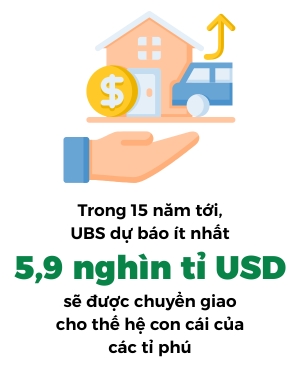 Không chỉ tăng về số lượng, UBS cho biết giới tỉ phú toàn cầu đang bước vào một giai đoạn tái cấu trúc sâu sắc, đặc biệt liên quan đến xu hướng thừa kế. Trong 15 năm tới, dự báo ít nhất 5,9 nghìn tỉ USD sẽ được chuyển giao cho thế hệ con cái của các tỉ phú. Tuy nhiên, điểm đáng chú ý là quá trình đại chuyển giao tài sản này không chỉ đơn thuần là việc kế thừa quyền lực trong doanh nghiệp gia đình. UBS ghi nhận 82% tỉ phú mong muốn con cái phát triển kỹ năng để thành công độc lập, trong khi 67% khuyến khích họ theo đuổi đam mê riêng thay vì rập khuôn theo con đường sẵn có.